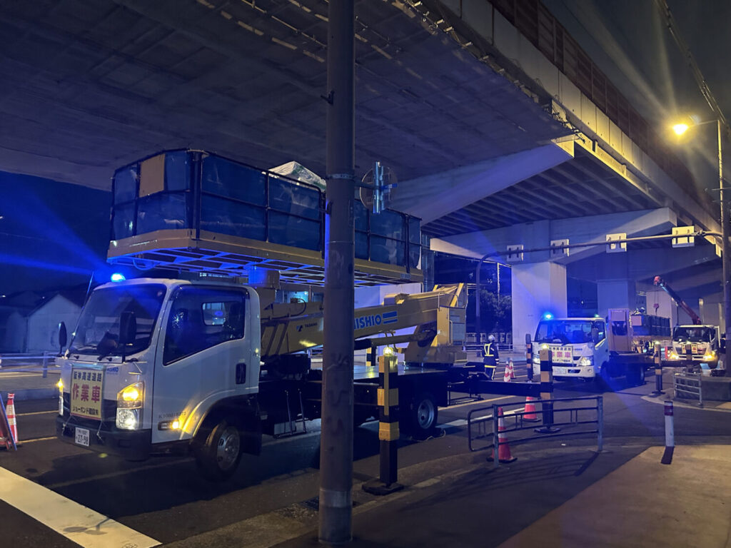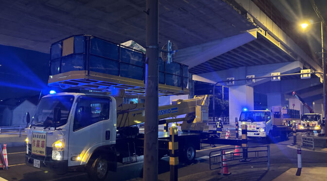 阪神高速松原線がメンテナンス工事をしているようです。
