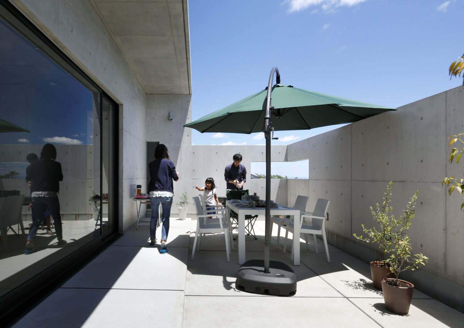 解放的な郊外型の住宅において、プライバシーを守れるアウトドアリビングを作り出しています。