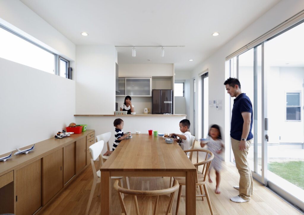 2階部分をずらすことで、縁側的な空間をつくりました。