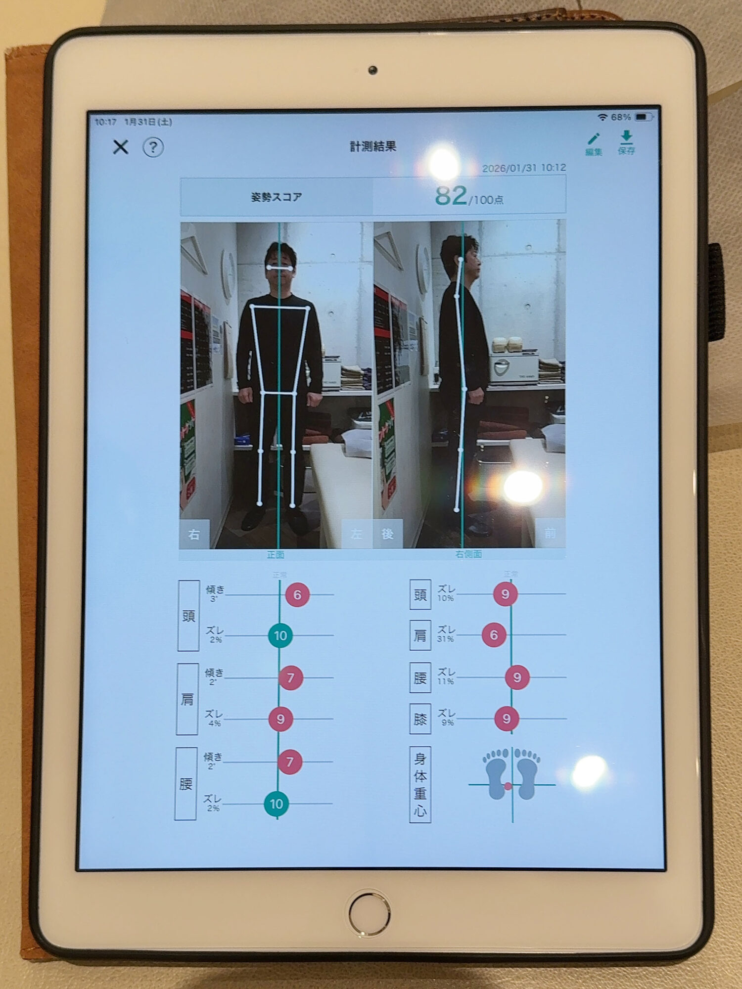 問診の後「姿勢を見てみますね」と写真を撮って見せてくれました。