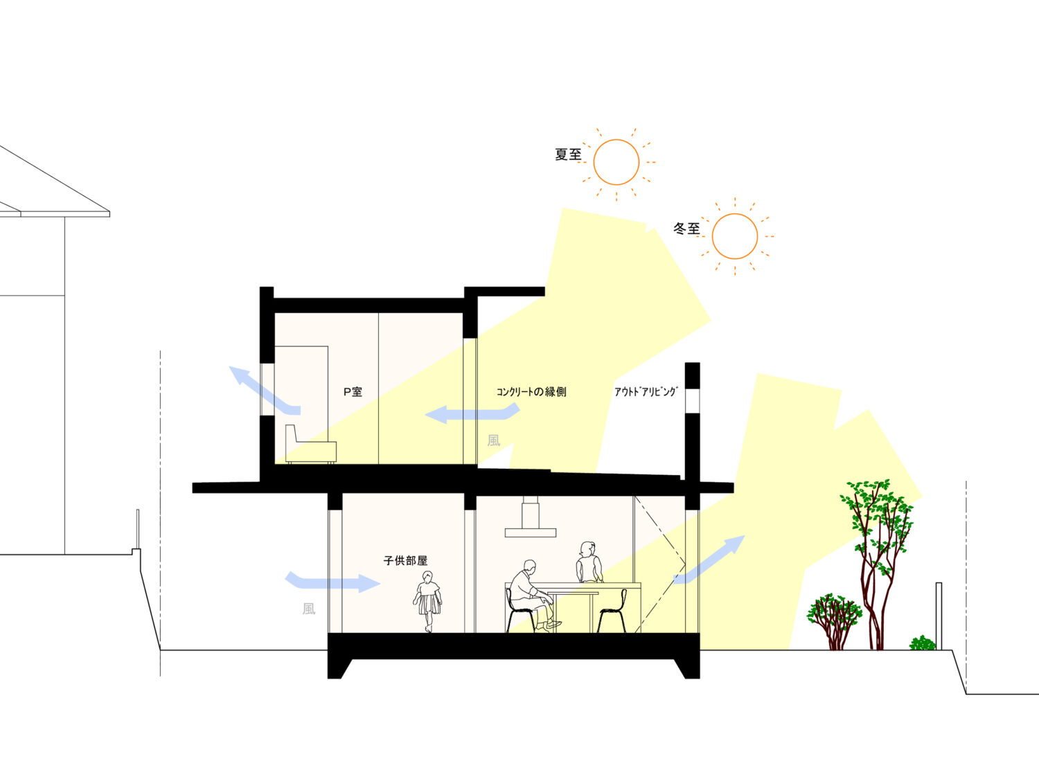 近隣と最も段差のある南東方向は、視線を気にする必要がありませんでした。