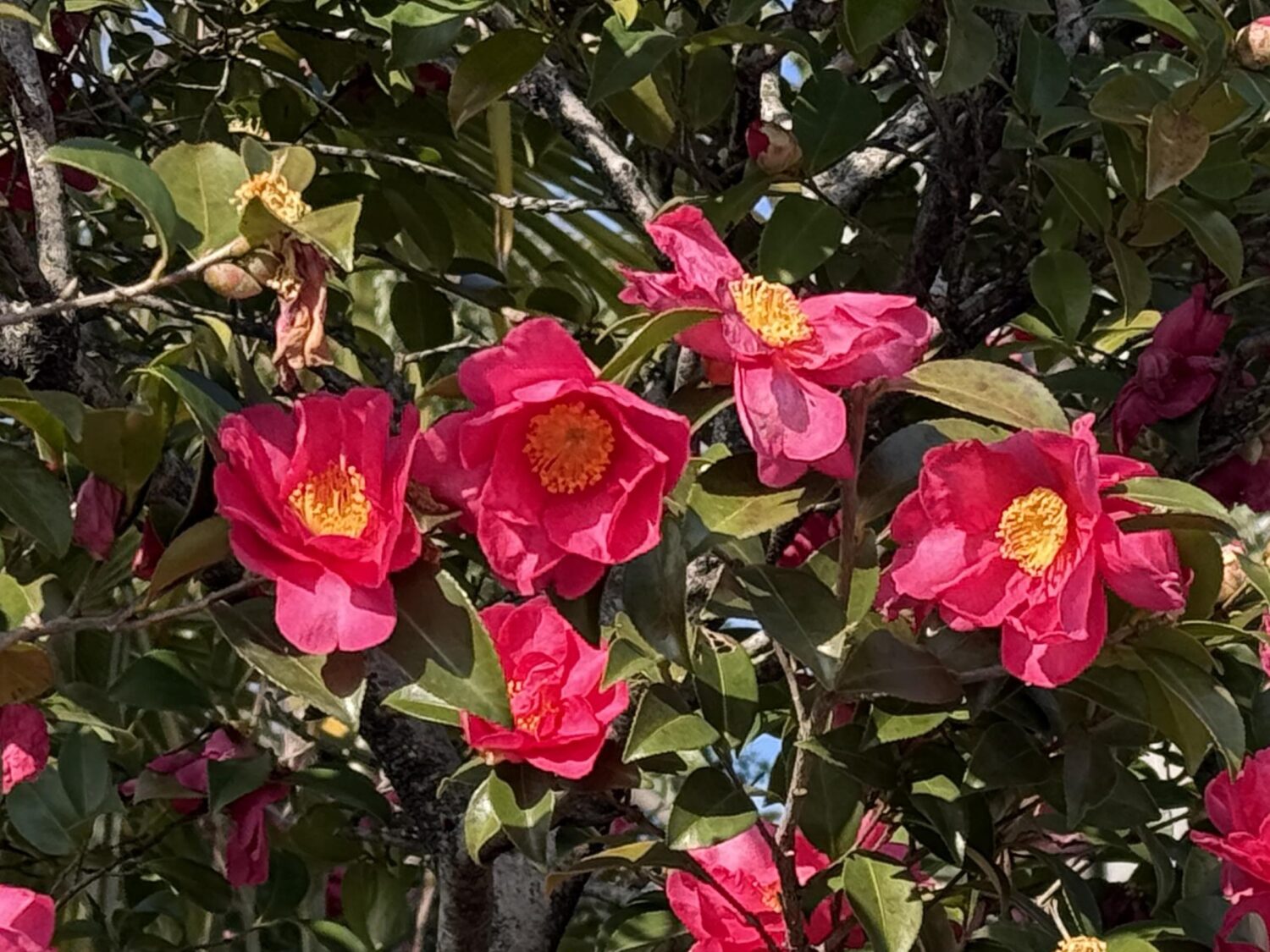 先日もサザンカの写真を上げましたが、寒い時期に赤い花を咲かせる椿、サザンカは、貴重な花と言えます。
