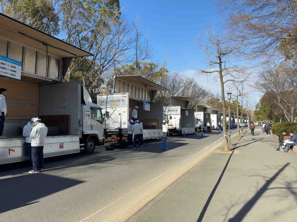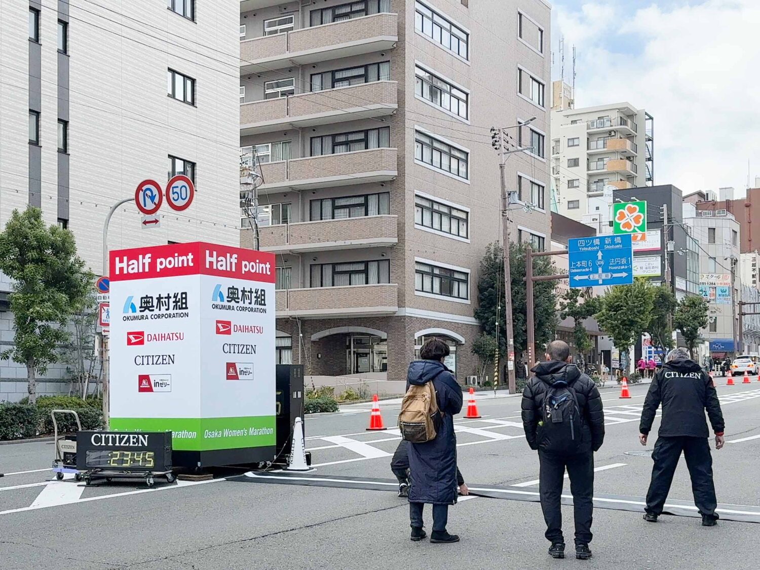 12時頃スタートする、大阪国際女子マラソンの準備がすでに始まっています。