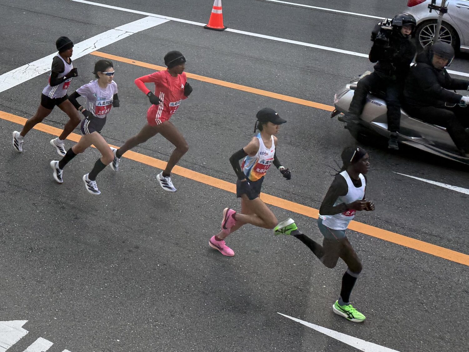 この時点で2位の矢田みくに選手ですが、この後、2時間20分を切っている外国人選手の前に出て、果敢にレースを引っ張ります。