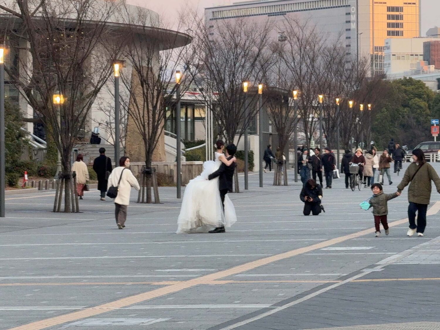 さあ帰ろうかと歩き出すと、新婚カップルが撮影をしていました。