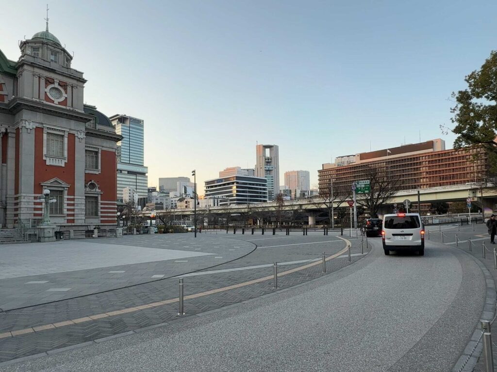 大阪高等裁判所前の水晶橋を渡ると市役所の東端あたりに出ます。