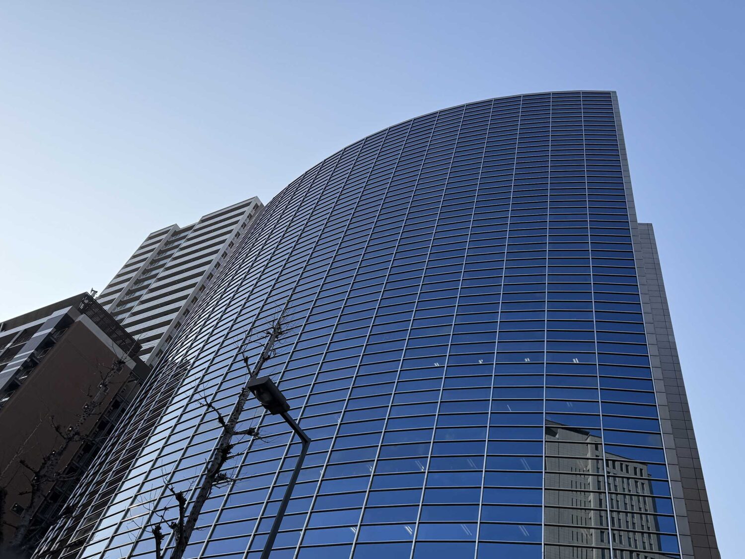 以前も紹介したことがありますが「大阪まちなみ賞」を受賞している、弧を描くカーテンウォールが美しいビルなのです。
