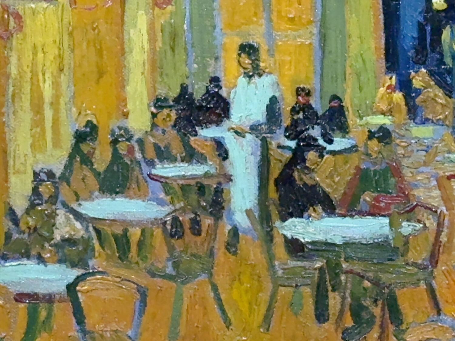 しかし『夜のカフェテラス』は、構図の大胆さ、色合い、ストーリーとも群を抜いていました。