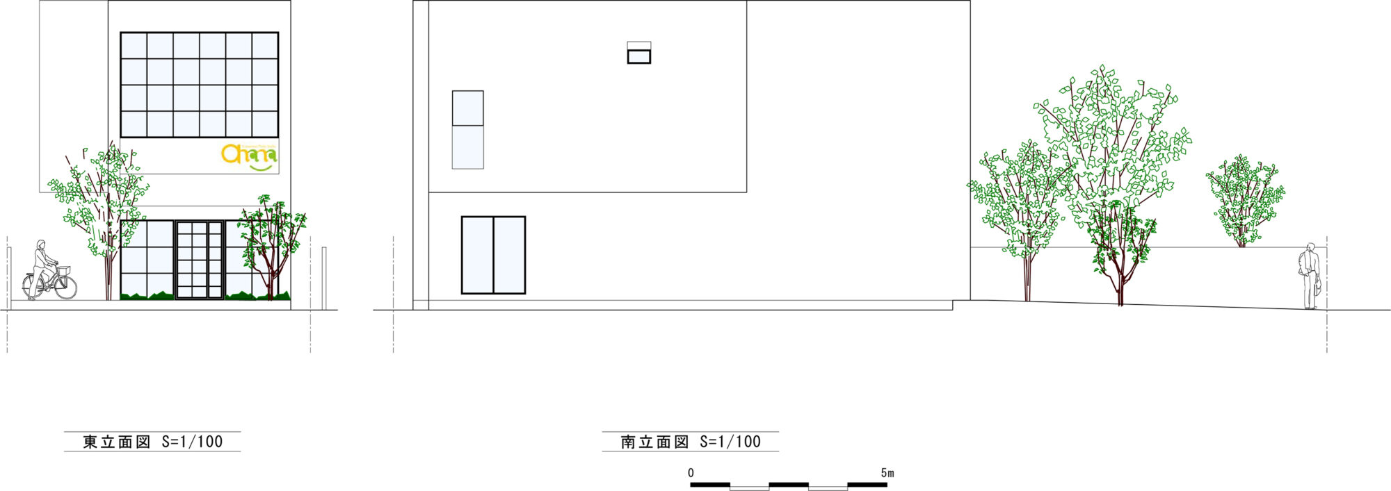 100m程離れた新敷地の回りには緑地帯があり、多くの樹々が植わっていた。この環境を、生かし切りたいと考えた。