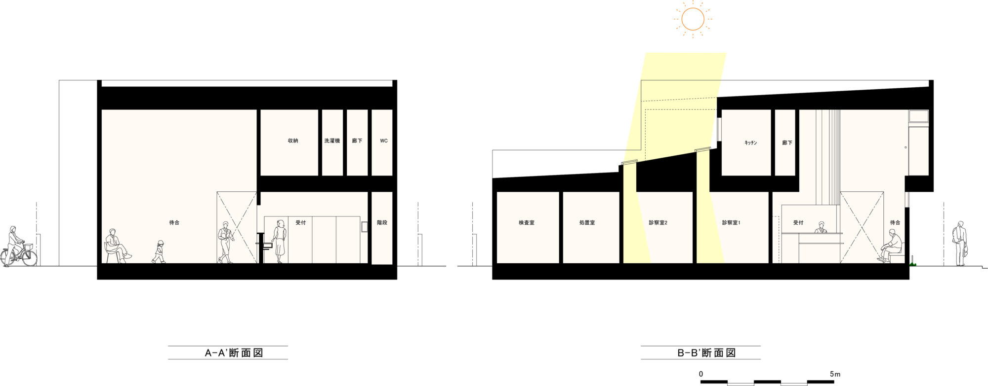 緑が見えたり、自然光が入る診察室を提案したこともあるが、診療内容によっては、それらが邪魔になることもある。今回も懲りずに診察室の奥にハイサイド、最も暗くなる廊下側にトップライトを提案した。